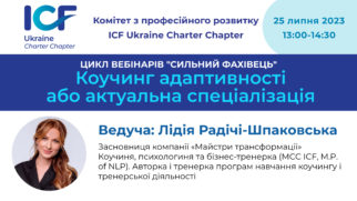 Комітет із професійного розвитку ICF Ukraine запрошує вас доєднатися до вебінару «Коучинг адаптивності або актуальна спеціалізація». Мета створення вебінару полягає в тому, щоб окреслити важливі етичні моменти щоб підтримати фахівців в намірі залишатися професіональними в своїх проявах та показати актуальність напрямку “коучинг адаптивності”.